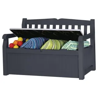 - Ideal outdoor storage bench for garden tools and equipment, furniture cushions, garden games and accessories