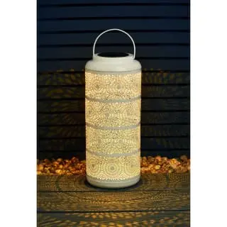 Create a relaxing ambiance in your garden with this stylish Ocean Air Solar Powered Metal Lantern.
