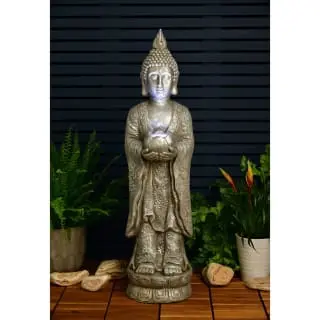 Add some style and character to your garden with this fabulous Standing Buddha Ornament With LED Light.
