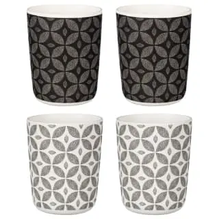 A set of four picnic tumblers with a stylish urban print design, ideal for all your summer picnics and outdoor dining.