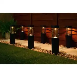 Cambridge Solar Powered Tube Post Lights 6pk with warm white LED. Light up driveways, gardens, paths and borders with these decorative post lights.